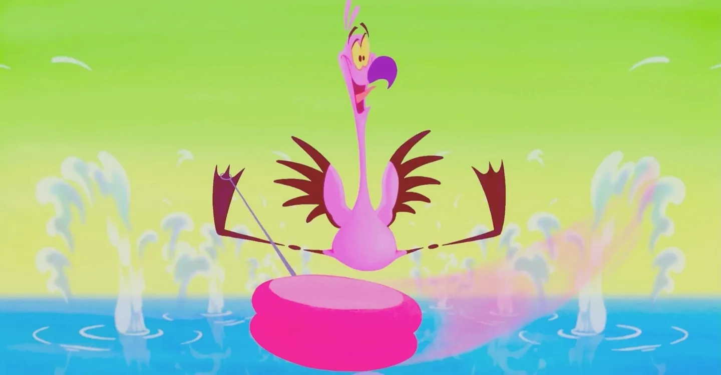 A flock of flamingoes tries to force a slapstick member, who enjoys playing with a yo-yo, to engage in the flock's "dull" routines. Introduced by James Earl Jones with animator Eric Goldberg.