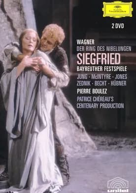 The third opera in Richard Wagner's epic Ring cycle, Siegfried follows the adventures of the son of demigods Siegmund and Sieglinde as he conquers his enemies and rescues the beauteous Brunnhilde with the help of his magic sword. This video preserves the controversial 1976 Bayreuth Centenary production, with Pierre Boulez leading the Bayreuth Festival Orchestra. Manfred Jung leads the cast as Siegfried, with Gwyneth Jones as Brunnhilde, Donald McIntyre as the Wanderer, and Hermann Becht as Alberich.